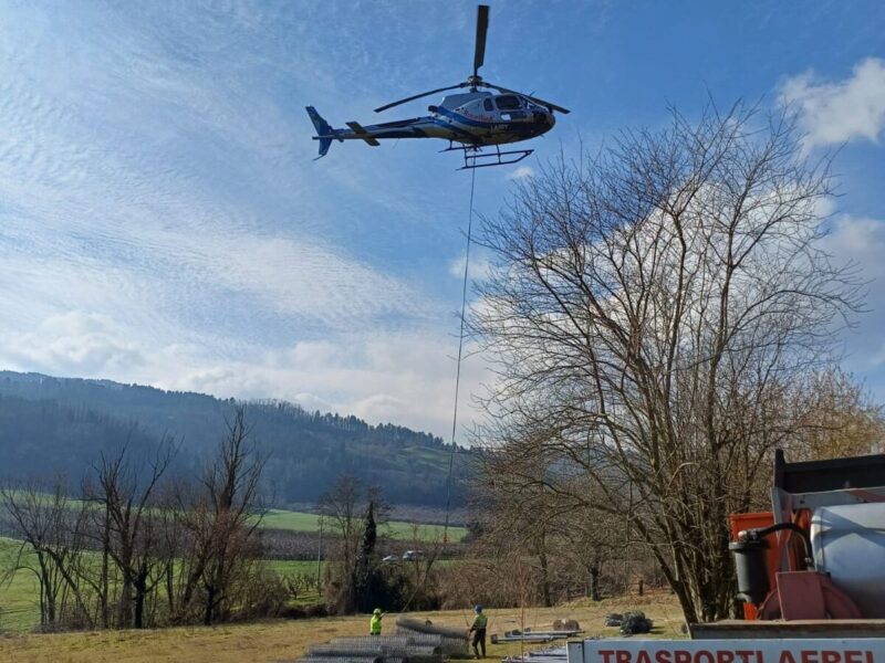 Si è dovuto usare un elicottero per il trasporto del materiale perché la viabilità è tortuosa e quindi con tempi di percorrenza più lunghi. In questo modo si è guadagnato tempo riuscendo a realizzare già parte dei lavori.