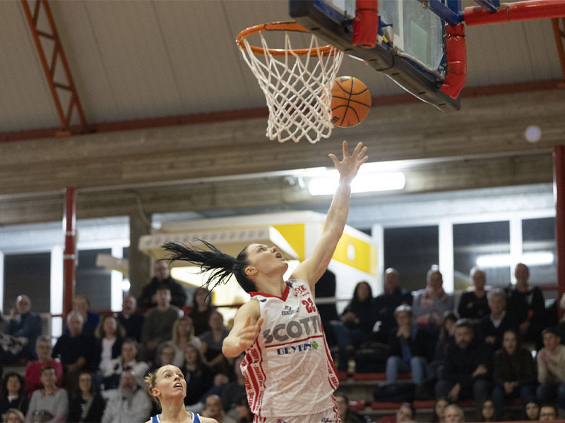La voglia di alzarsi ed andare ad ascoltare le canzoni di Sanremo è tanta ma sarebbe ingeneroso per la Scotti che continua a dare spettacolo sotto gli occhi di Ianezic che, febbricitante, se la vede tutta dalla panchina. Antonini con uno slalom dentro l’area mette il più 20 (35-15) che subito lievita a più 25 con Ndiaye mentre si aggiunge un posto a tavola anche per Chelini che ringrazia con due liberi. A metà siamo 52-27 e, al ritorno in campo, l’Use Rosa ha ancora in sangue agli occhi come dimostrano non tanto i 19 punti fatti, quanto i 5 subiti. Cosa dire ancora? Che al 30’ siamo 71-32 e che a mettere il più 40 sull’80-40 è Chelini con una partita che è ormai Under 19 visto il largo spazio dato giustamente alle giovani Fiaschi, Samoylych, Chelini appunto e Ndiaye che chiude in doppia/doppia al pari di Vente che, ormai, da questo punto di vista non fa più notizia. Il gong è sull’88-47.