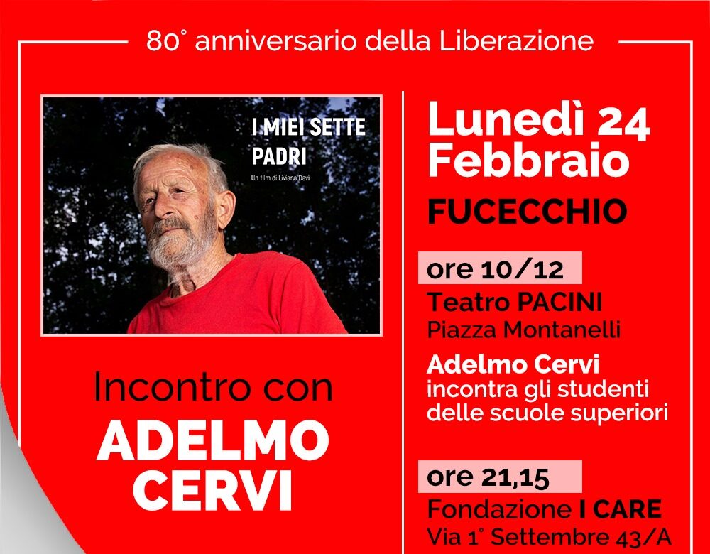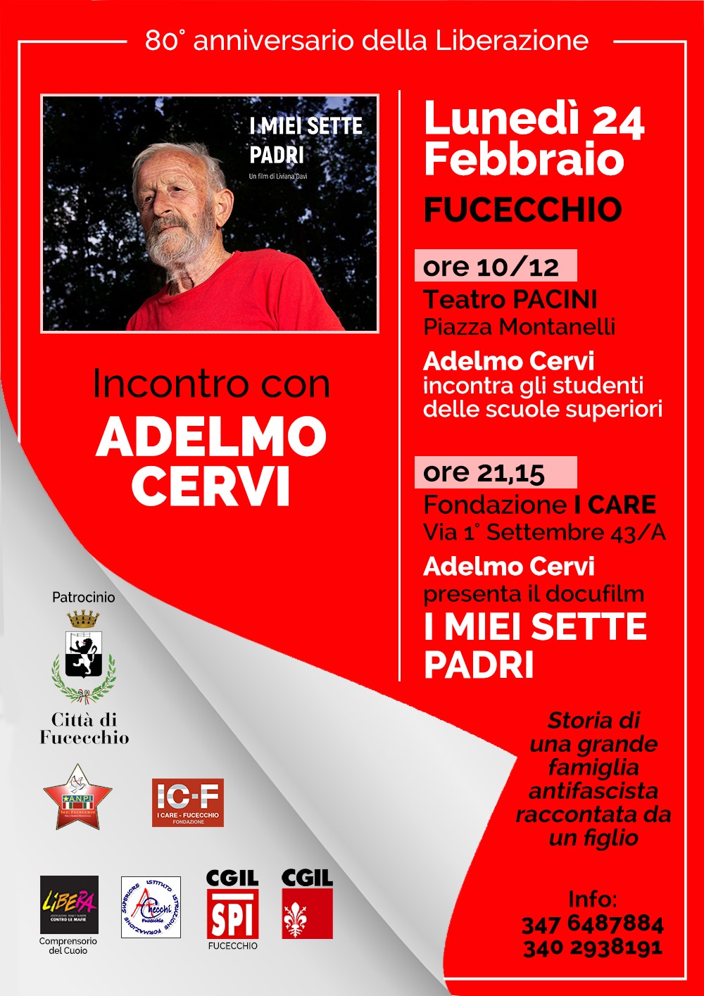 Lunedì 24 febbraio l'amministrazione comunale, in collaborazione con ANPI, Libera, Fondazione I Care, istituto superiore “Arturo Checchi” e Spi-Cgil, promuove due momenti di incontro. Il primo dedicato agli studenti dell'istituto Checchi, che alle ore 10 al teatro Pacini incontreranno Adelmo Cervi per ascoltare la sua testimonianza. Il secondo momento sarà invece aperto all'intera cittadinanza: alle 21:15, presso la Fondazione I Care, in programma la presentazione del docufilm “I miei sette padri”, che racconta la storia della famiglia Cervi.