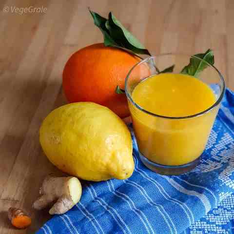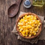 Prendete il surimi tagliatelo a julienne, tagliate le zucchine secondo la lunghezza a striscioline. Mettete le zucchine nell’aceto di mele e un po’ di sale e lasciatele marinare per 30 minuti e aggiungetele poi al surimi e condite con un po’ di succo d’arancia e di limone. Tagliate il mango non troppo maturo a listarelle sottili e aggiungetelo al surimi e alle zucchine marinate. Poi in un altro contenitore mettete dell’insalata tagliata, il mais, i pomodorini tagliati a pezzetti, le carote tagliate fini, un po’ di crauti, prezzemolo e aglio tritati e condite il tutto con olio extravergine di oliva un pizzico di sale e pepe, mescolate tutte le verdure. Poi aggiungete l’insalata mista al surimi e le zucchine e amalgamate il tutto. Guarnite con foglie di alloro e spicchio di arancio e limone e qualche chicco di melograno.