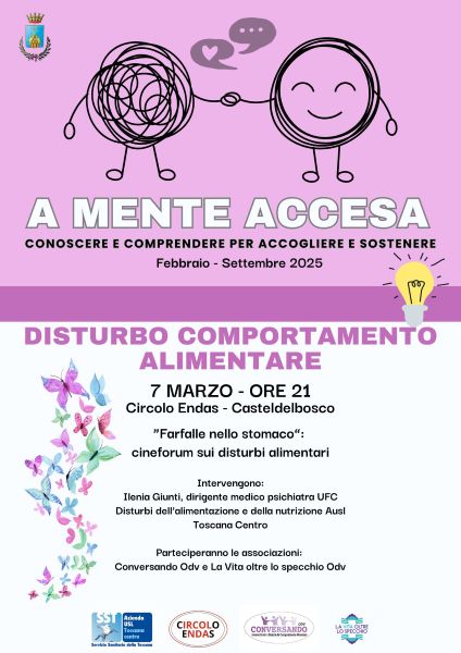 Appuntamento venerdì 7 marzo alle 21 al circolo Endas di Casteldelbosco con la serata dedicata al Disturbo del comportamento Alimentare. Si aprirà con la proiezione del documentario Farfalle nello stomaco, un'opera che esplora le complessità emotive e psicologiche legate ai disturbi alimentari, focalizzandosi sulle esperienze vissute da chi ne soffre. Dopo la visione, seguiranno gli interventi della Dottoressa Ilenia Giunti, Dirigente Medico Psichiatra presso l'UFC Disturbi dell'Alimentazione e della Nutrizione, che offrirà un’analisi sui disturbi alimentari, fornendo informazioni utili su prevenzione, diagnosi e trattamenti. Seguiranno le testimonianze di Donatella Naddi e Silverio Spitaleri, rispettivamente Presidente e Presidente onorario dell'Associazione Conversando odv, e di Patrizia Cappelletti, Presidente dell’Associazione La Vita oltre lo Specchio odv, che approfondiranno il ruolo del sostegno sociale e della comunità nell’affrontare le difficoltà legate ai disturbi alimentari, condividendo esperienze pratiche di familiari delle persone che vivono questi disturbi. Concluderà la serata la testimonianza trasformata in espressione artistica di Isaura Nencini - Acquaviva APS