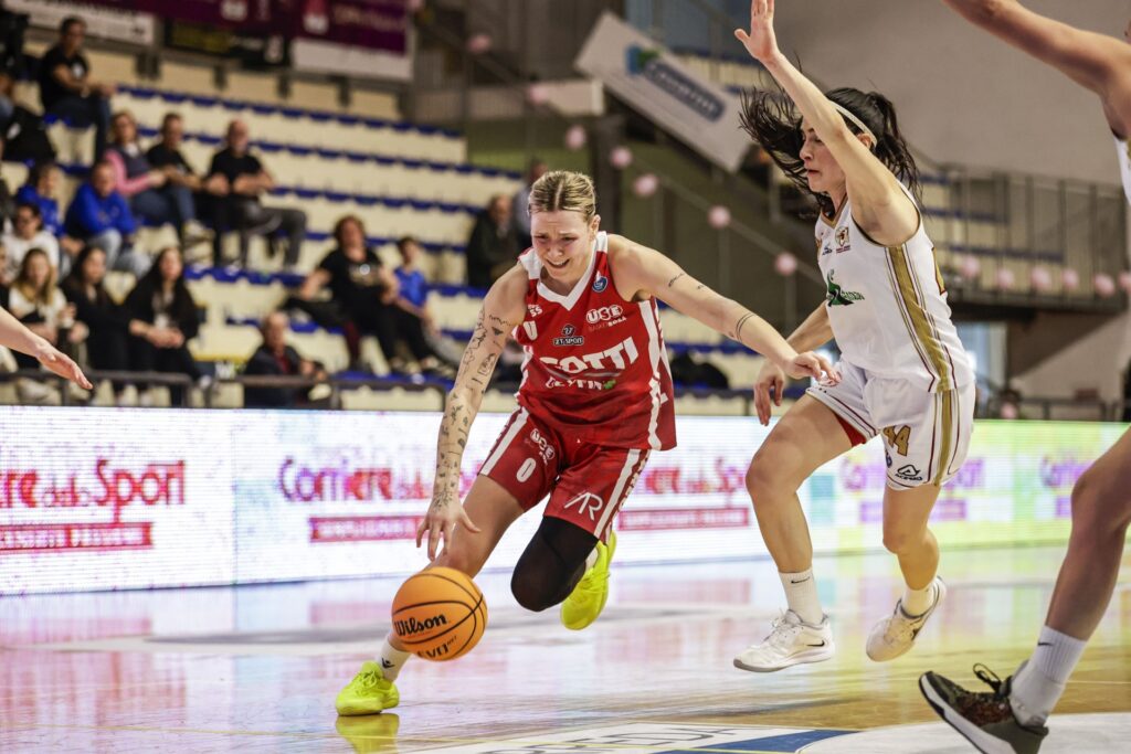 Si può chiamare anche col suo nome: capolavoro. L’Use Rosa Scotti vola in semifinale di Coppa Italia battendo per 77-55 Mantova o, forse meglio dire per far capire l’importanza del successo, la capolista dell’altro girone. La squadra di coach Alessio Cioni vive momenti alterni durante l’arco dei quaranta minuti ma ha il merito di restare sempre unita, non mollare mai e trovare soprattutto nella difesa la forza di reagire e prendere in mano la gara nel parziale finale. Il 21-9 dei dieci minuti conclusivi fotografa meglio di tanti discorsi quanto detto ed ancora una volta è nella forza del gruppo che la Scotti poggia per togliersi una gran bella soddisfazione in attesa di giocarsi la semifinale. In un quadro simile è quasi ingeneroso parlare delle singole perché, accanto a chi balza agli occhi per i ventelli personali (Tarkovicova e Colognesi) ci sono tutte le altre che, in un modo o nell’altro, portano il loro mattoncino per costruire la casa. In una frase: la vittoria di tutte.