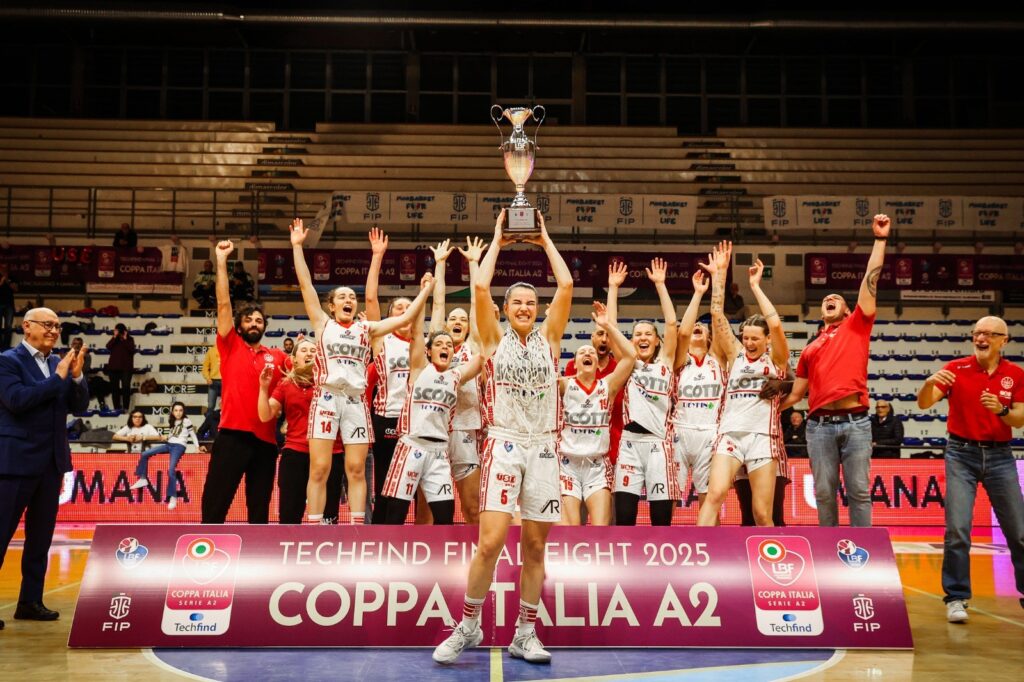 L’Use Rosa Scotti scrive un’altra pagina della sua meravigliosa storia. Per la prima volta una giocatrice biancorossa alza al cielo la Coppa Italia dopo una tre giorni incredibile conclusa con la vittoria per 75-74 su Costa Masnaga. In quel punticino ci sono tante cose: quindici anni di gestione Alessio Cioni, le tante giocatrici nate e cresciute nel vivaio ed arrivate in prima squadra, una di queste, Irene Ruffini, che alza al cielo la Coppa, il lavoro fatto dalla società in tutti questi anni, la crescita esponenziale del movimento, il talento delle protagoniste di questa indimenticabile tre giorni rosetana e la compattezza del gruppo come i valori di casa Use impongono. Sul podio c’è la mvp Giulia Ianezic, ma in quel premio ci sono tutte le compagne, ognuna delle quali ha dato il proprio contributo a centrare questo storico traguardo. Un ultimo dato a legittimare la vittoria è il 3 su 3 che, fino a questo punto della stagione, la Scotti vanta su Costa Masnaga. Ce n’è abbastanza perchè questa giornata venga ricordata come una pagina di storia sportiva della nostra città.