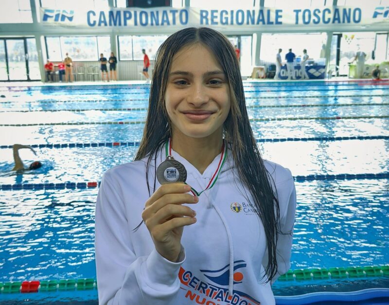 Cala il sipario sulle sei giorni del Campionato Regionale Categoria, tenutosi alla Piscina La Bastia di Livorno. Nell’occasione i 31 finalisti della Fiammetta, numero record di partecipanti, grazie all’ottimo lavoro svolto dal tecnico Lorenzo Chesi e dalla collaborazione dell’istruttrice Federica Silla, non mancano la ghiotta occasione per fornire esaltanti prove che valgono loro ben 67 “records personali” sulle 92 gare disputate. Spicca tra tutti, la bella medaglia d’argento sui 100 stile, conquistata dalla bravissima ed emergente Aurora Dodaj classe 2012 nella categoria Ragazzi. Da segnalare inoltre il bel Record Societario ottenuto da Francesco Cocci sui 200 rana con 2,21,52, a cui fanno seguito i ben sette quarti posti ottenuti dal drappello dei certaldesi, a testimonianza di un ruolo da veri protagonisti.