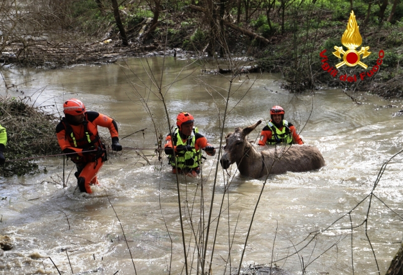 I Vigili del Fuoco del comando di Arezzo, con il distaccamento di Montevarchi, sono intervenuti questa mattina a Terranuova Bracciolini, lungo il fiume Arno, a valle della diga di Levane, per soccorrere circa 80 asini rimasti bloccati su due isolotti a causa dell'innalzamento del livello dell’acqua.
