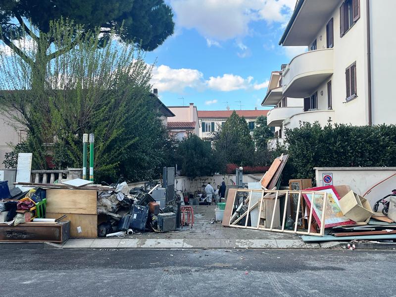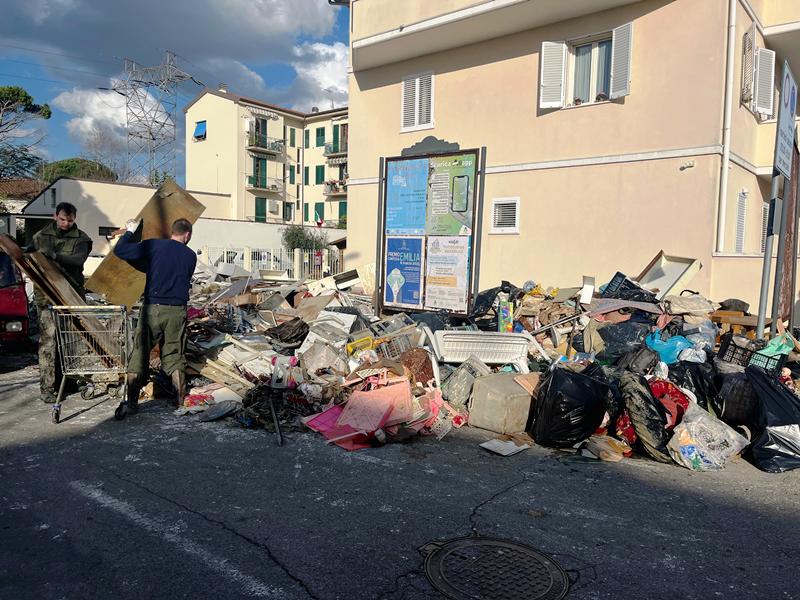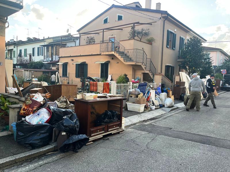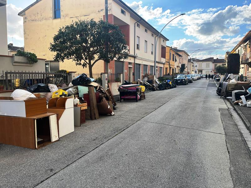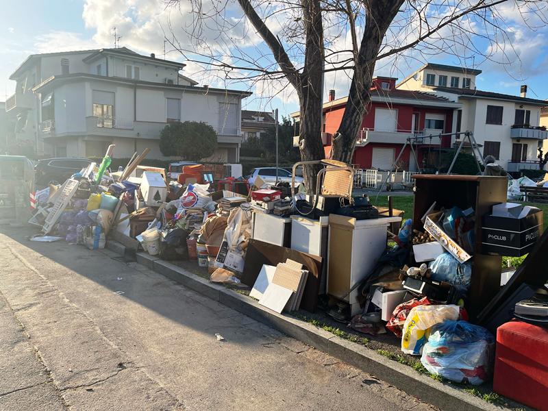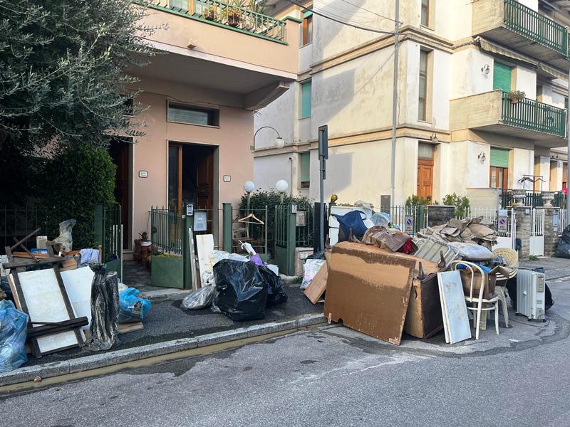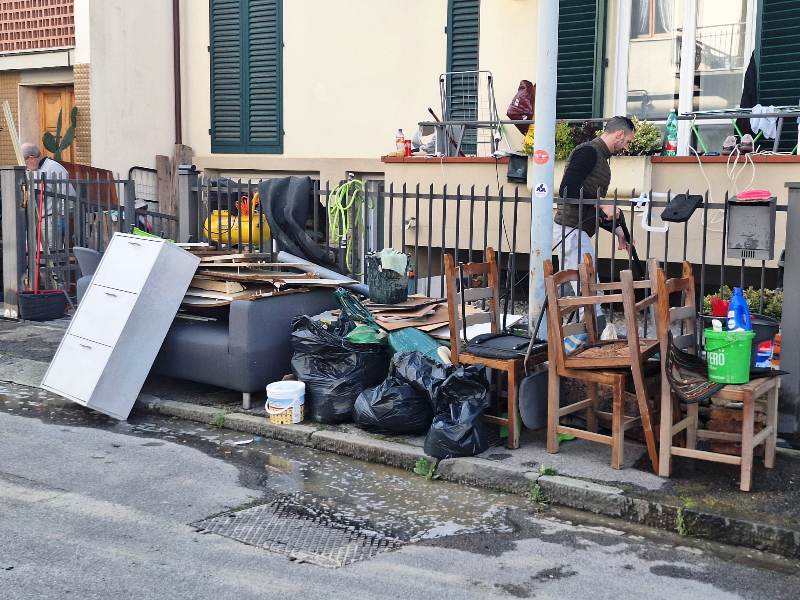 La pioggia sembra essersi placata, ma dopo la paura è il momento di rimboccarsi le maniche e contare i danni. Al posto dell'acqua, adesso, le strade di Ponzano si riempiono di mobili, elettrodomestici e oggetti di vario tipo: le macerie lasciate dall'alluvione. I residenti hanno infatti svuotato i garage e gli scantinati rimasti sommersi nelle scorse ore, buttando via ciò che è stato rovinato dall'acqua, accatastando parte delle proprie vite ai margini delle strade.