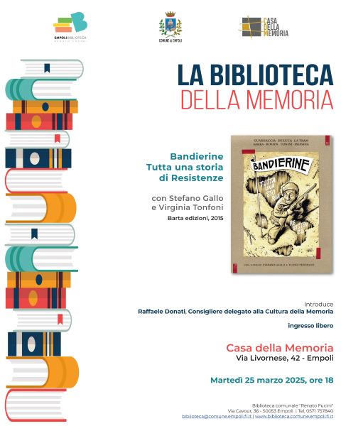 Ultima presentazione del calendario di marzo alla Casa della Memoria (via Livornese, 42) che ospiterà il libro “Bandierine. Tutta una storia di Resistenze” (Barta edizioni, 2015), martedì 25 marzo 2025, alle 18, con Stefano Gallo e Virginia Tonfoni, introduce Raffaele Donati, consigliere comunale con delega alla Cultura della Memoria. L’ingresso è libero.