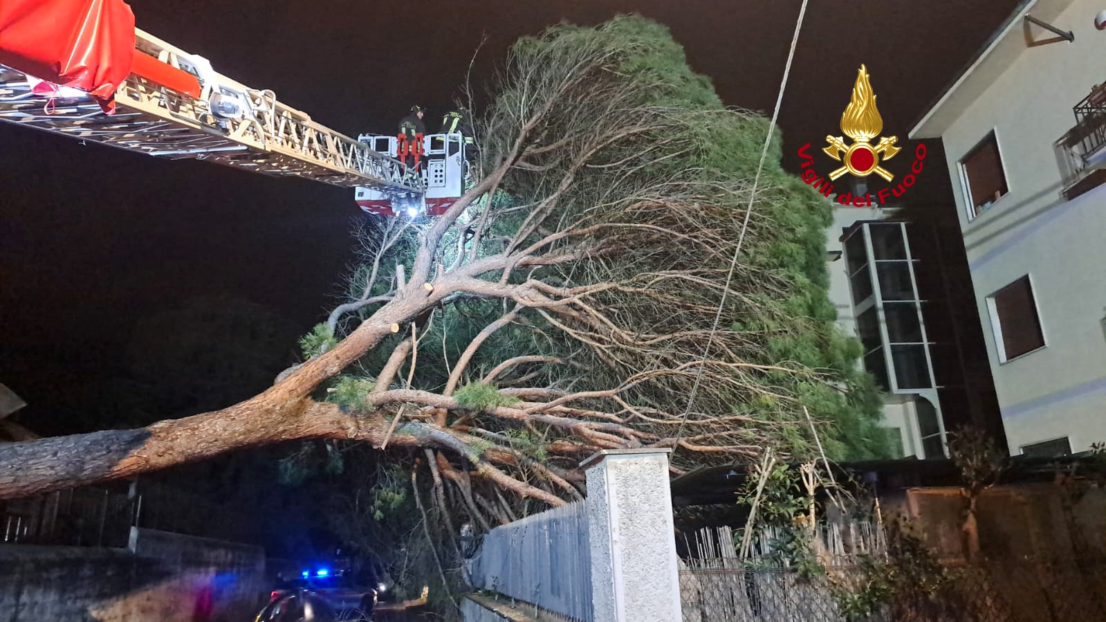 Un pino è caduto a Firenze in via D'Annunzio, zona Coverciano. Il fusto dell'albero, cadendo, ha attraversato l'intera carreggiata e la chioma è finita all'interno di una proprietà. Il fatto è avvenuto verso le 22.30 di sabato 29 marzo.