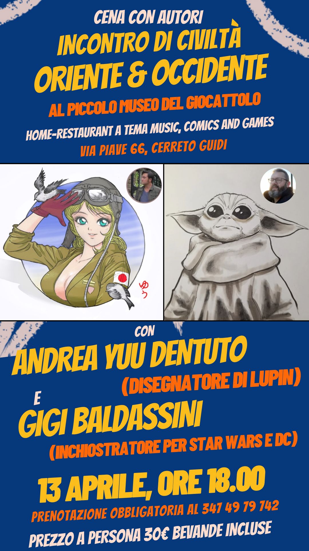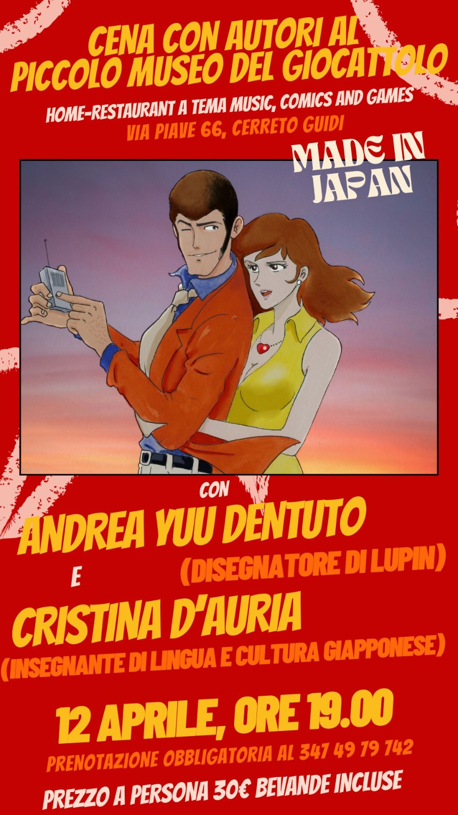 È arrivata la Primavera Giapponese al Piccolo Museo del Giocattolo di Cerreto Guidi. Doppio appuntamento 12 e 13 Aprile con Andrea Dentuto e Cristina D'Auria e Gigi Baldassini. In entrambi i casi si tratta di una cena-incontro a 30 euro menù fisso.