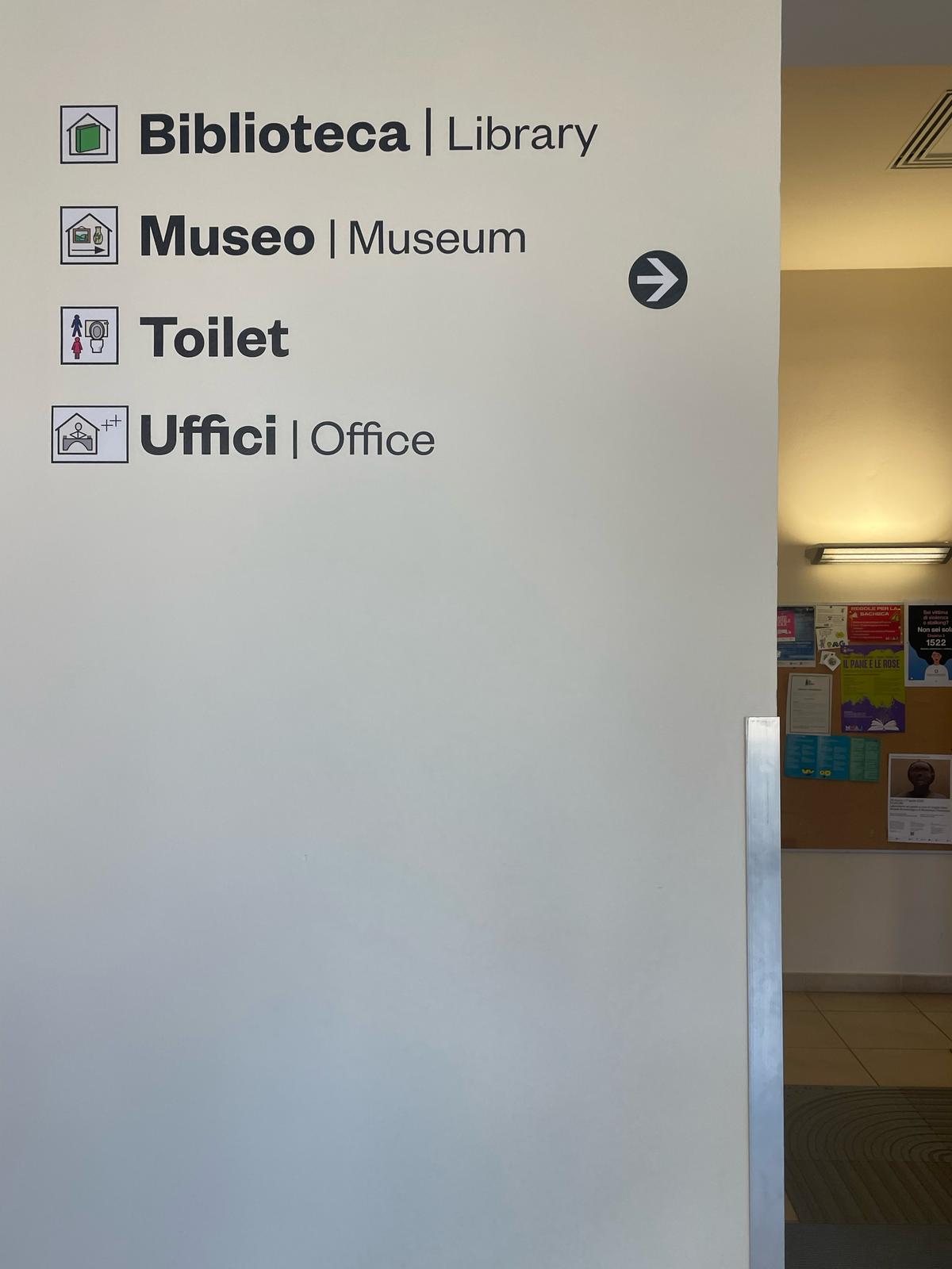 La CAA, quindi, non intende sostituire il linguaggio verbale, ma affiancarlo. Per questo motivo, accanto alle tradizionali indicazioni, sono stati collocati pittogrammi che facilitano la comprensione del messaggio e supportano l’orientamento all’interno dell’edificio.