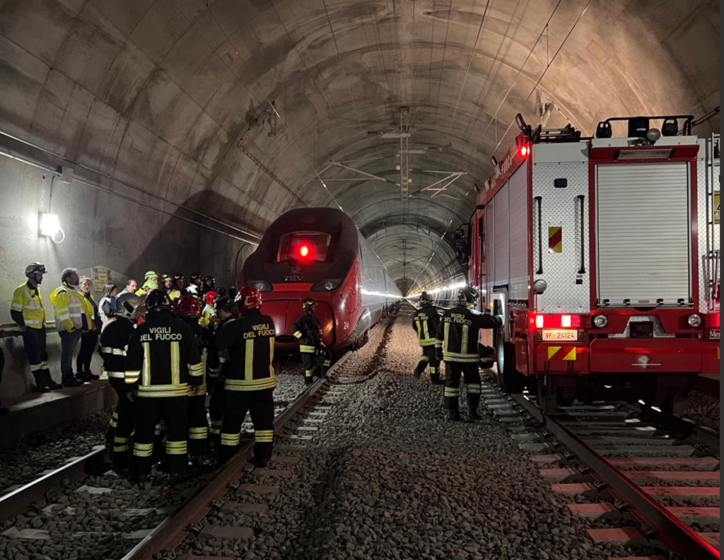 Il macchinista arresta il treno in corrispondenza di un Posto di esodo e provvede immediatamente a lanciare l’allerta alla sala operativa di Rete Ferroviaria Italiana, che attiva il Piano di Emergenza interno e richiede l’intervento delle strutture pubbliche di soccorso, come previsto dal Piano di Emergenza e Soccorso della Galleria.