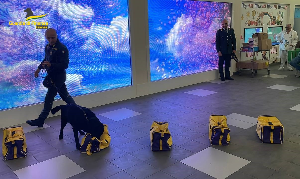 Ieri la Guardia di Finanza di Firenze ha portato un po’ di leggerezza ai giovani pazienti ricoverati presso l’ospedale pediatrico fiorentino AOU Meyer IRCCS, attraverso una dimostrazione di come opera un’unità cinofila della finanza.