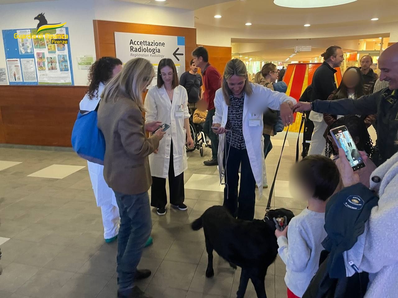 Il cane Elio, labrador specializzato nella ricerca di valuta, ha mostrato le sue abilità nel ricercare denaro occultato in valigie e borse. Il Comandante Provinciale GDF Firenze – Generale di Brigata Bruno Salsano – ha salutato il Direttore Amministrativo Dott. Lorenzo Pescini ed insieme ai pazienti e genitori hanno assistito alla dimostrazione, che si è tenuta negli spazi antistanti le finestre dei sogni. Anche i bambini ricoverati presso il reparto di Trapianto midollo osseo che sono impossibilitati ad uscire, hanno potuto salutare Elio dalle finestre delle loro stanze. A tutti i bambini presenti presso la struttura sanitaria i finanzieri hanno consegnano dei piccoli doni.