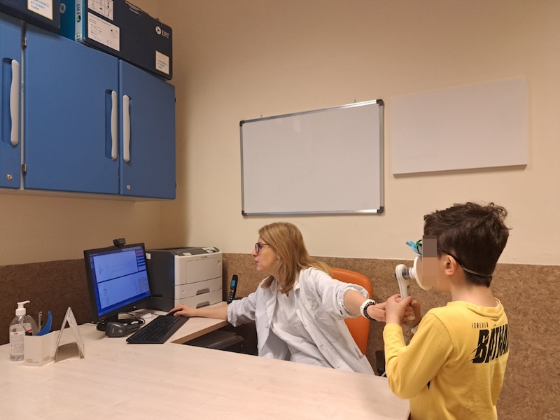 Valutazione pneumologica e spirometria. In questa occasione sarà offerta gratuitamente una breve valutazione e una spirometria ai bambini a partire dai 6 anni di età, non noti al servizio e fino a esaurimento posti e lo staff del Meyer sarà a disposizione per dare un primo inquadramento sulla salute respiratoria del bambino/a. A fine valutazione sarà rilasciato un piccolo gadget, gentilmente donato dalla Fondazione Meyer. La spirometria è un esame semplice e assolutamente indolore: al bambino viene chiesto di inspirare - cioè di riempire profondamente i polmoni d’aria – per poi espirare con forza per svuotarli del tutto. Ad aiutarlo, oltre al personale del Meyer, una simpatica applicazione che gli consente di vedere su schermo alcune animazioni che si muovono “a tempo” con il suo respiro. Questo esame è importante per valutare la funzionalità polmonare ed intercettare precocemente malattie respiratorie, come appunto l’asma bronchiale. Lo scorso anno, questa iniziativa ha permesso di fare, su 30 bambini inquadrati, 5 nuove diagnosi, che sono state subito prese in carico dalla Broncopneumologia del Meyer.