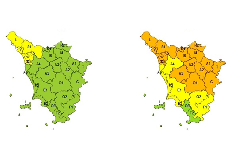 Nel pomeriggio di oggi sono previste precipitazioni isolate o sparse, in prevalenza di debole o al più moderata intensità. Dalla serata vi sarà invece un aumento dell’instabilità sull’intera Toscana con precipitazioni sparse, anche a carattere di rovescio o temporalesco, più frequenti sulle zone interne Centro-settentrionali. Per questo la Sala Operativa della Regione Toscana ha emesso una allerta arancione per rischio idrogeologico e forti temporali nelle zone Settentrionali ed interne.