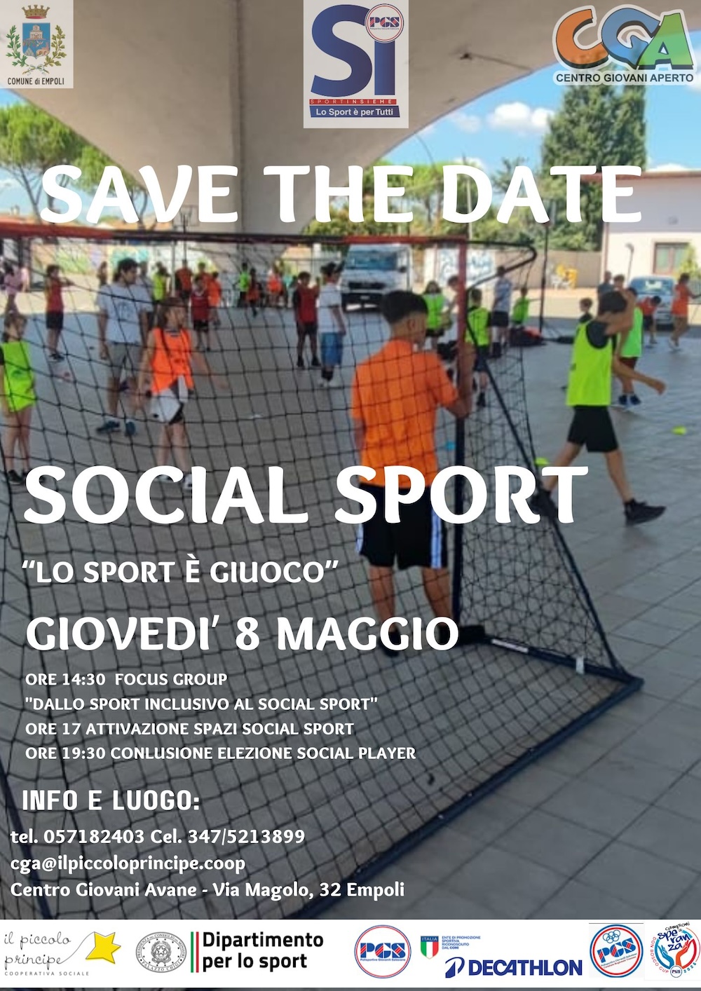 "Social sport", questo il titolo dell'evento in programma nel pomeriggio di giovedì 8 maggio alla Vela di Margherita Hack a Empoli. Di seguito il programma: