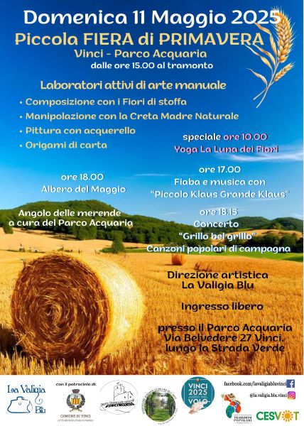 La Piccola Fiera di Primavera è un evento patrocinato dal Comune di Vinci, dal Centro di Tradizioni Popolari di Cerreto Guidi, dal Cesvot, in collaborazione con Vincincentro e Parco Acquaria, con la Direzione Artistica di La Valigia Blu.