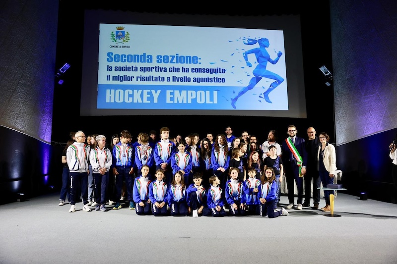Si torna alle ‘sezioni’, la 2: società sportiva che ha raggiunto il miglior risultato a livello agonistico. L’assessora e il responsabile del settore giovanile dell’Empoli Calcio Federico Bargagna hanno consegnato il premio alla squadra Hockey Empoli, rappresentata dal presidente Paolo Errico e dagli allenatori Carboncini-Castelli-Iasello.
