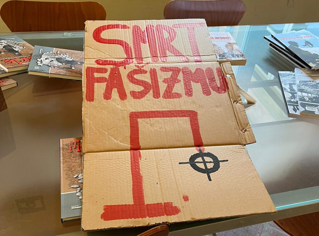 Purtroppo la giornata si è conclusa con una triste sorpresa: i “soliti noti” hanno oltraggiato, con un gesto vigliacco, la memoria della tragedia delle foibe. Un atto grave, ancora di più perché compiuto in una struttura pubblica votata alla cultura, che dovrebbe servire a “costruire ponti” e non per dividerci.