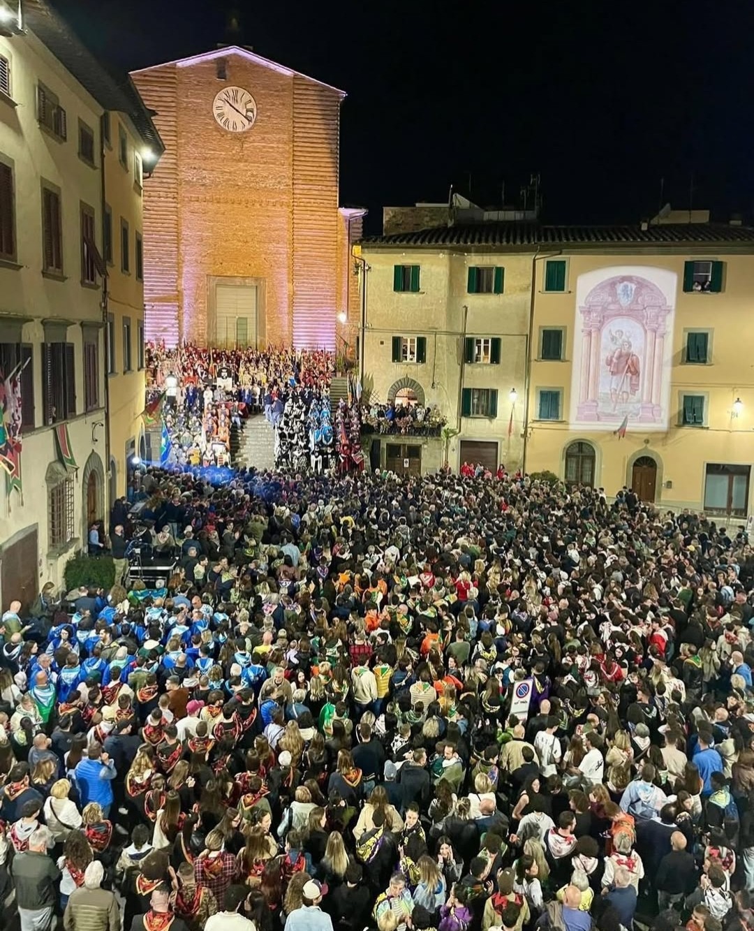 Eccolo là, svetta su tutta piazza Vittorio Veneto, acclamato da una comunità intera, osservato con voglia e gola da parte di dodici contrade e migliaia di contradaioli. Fiammante, colorato, storico, puro: è lui, il Cencio. I protagonisti in buca sono i cavalli coi fantini, ma poi a esser vinto è proprio lui, e stasera - martedì 14 maggio - è stato osannato da una folla festante come per ogni martedì pre-Palio. Siamo a Fucecchio e non poteva che essere così, gioiosa e calda, la sera della presentazione del Palio.