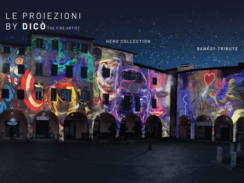Il centro storico di Empoli diventerà una suggestiva scenografia fatta di luce e arte, con installazioni luminose sui palazzi di piazza della Vittoria e piazza Farinata degli Uberti. Saranno proiettate le opere di DICò, The Fire Artist (al secolo Enrico Di Nicolantonio), artista di fama internazionale che trae ispirazione dalla Pop Art per rendere colorato e variopinto il centro.