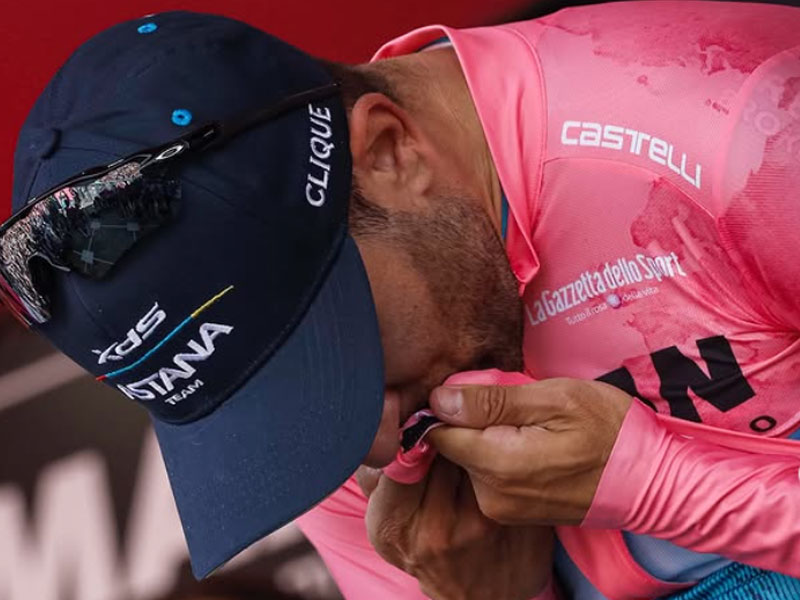 Otto vittorie di tappa nella sua lunga storia al Giro d'Italia ma mai indosso quel colore da leader della corsa. Il 36enne di Cecina ha coronato il suo sogno al termine di una tappa di montagna, la seconda di questa edizione da Giulianova a Castelrainondo per un totale di 198 chilometri.