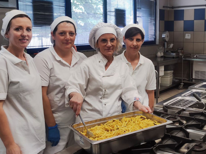 E per finire la degustazione dei piatti in gara proposti dai genitori e realizzati con le cuoche che da ormai molti anni sostengono con passione e impegno una progettualità, oltre alla quotidiana preparazione di un totale di 800 pasti al giorno per tutti i nidi e le scuole del Comune.