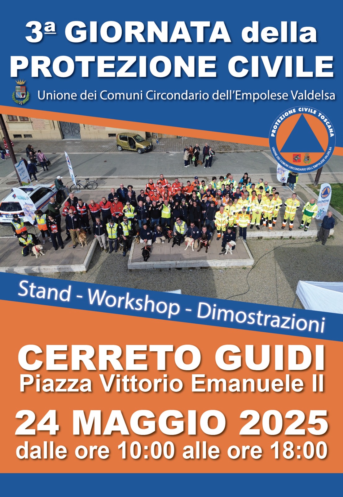 Sabato 24 maggio 2025, dalle 10 alle 18, Piazza Vittorio Emanuele II a Cerreto Guidi si trasformerà in un grande spazio dedicato alla protezione civile. In occasione della 3ª Giornata della Protezione Civile, promossa dall’Unione dei Comuni dell’Empolese Valdelsa, cittadini di ogni età potranno scoprire da vicino le attività svolte da chi ogni giorno lavora per la sicurezza di tutti.