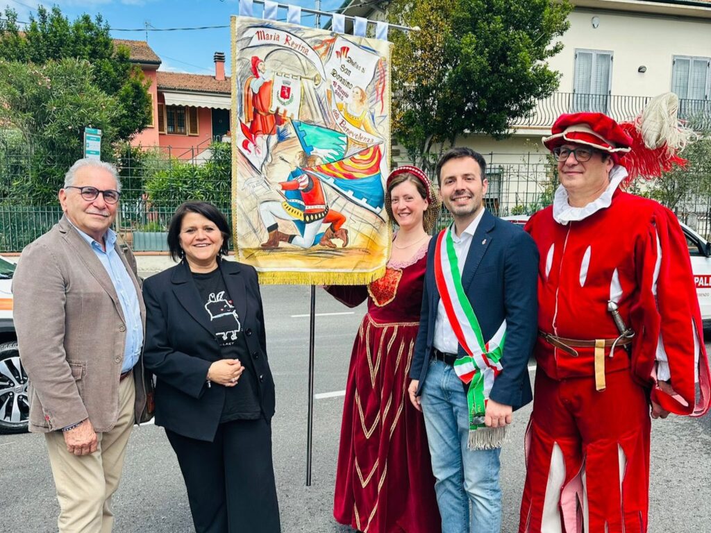 A vincere la disfida è stata proprio la Pro Loco di Montopoli Valdarno che si è aggiudicata il drappo d’onore, realizzato per l’occasione dalla pittrice Silvia Serafini, artista fiorentina, che racchiude le tre arti della Disfida: i musici, la danza e gli sbandieratori legate tra di loro dal nastro con la scritta Maria Regina della Benevolenza.