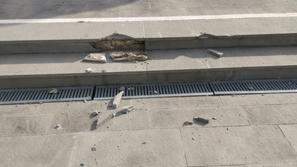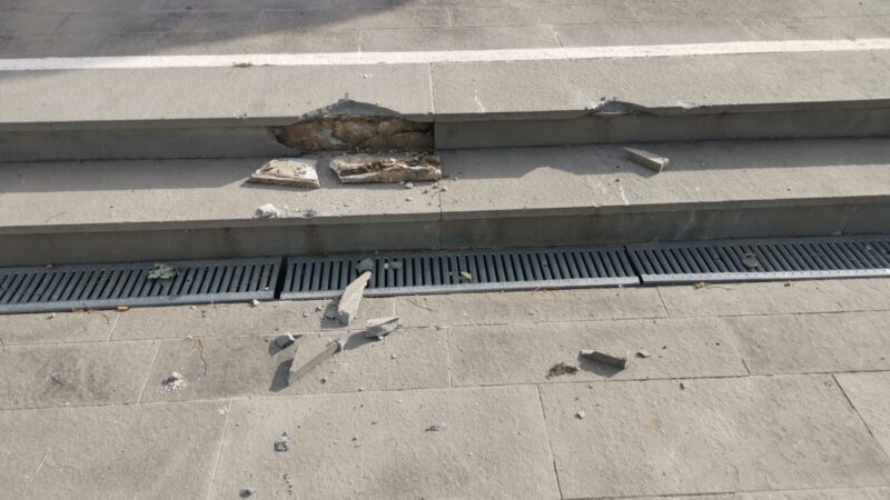 Nuovo danneggiamento per la scalinata in pietra serena che collega la piazza della Repubblica, davanti al municipio, e il nuovo parco urbano alla via Carducci. Responsabile del danno un uomo pratese di 86 anni che con la sua Dacia Sandero questa mattina è entrato in piazza Donatori di sangue, ha imboccato il vialetto pedonale che consente l'accesso ai disabili in piazza della Repubblica ed è uscito su via Carducci, percorrendo l'intera scalinata in pietra.