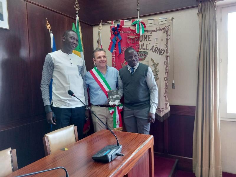 Occasione ufficiale della visita diplomatica nel paese conciario era la presentazione alla Biblioteca Adrio Puccini del libro I Senegalesi in Italia, scritto da Adama Gueye, già primo presidente dell'associazione Cossan. La presentazione del libro è stata preceduta dalla visita al municipio di piazza del Popolo e da uno scambio di considerazioni tra il sindaco l'ambasciatore Ndiaye e i rappresentanti della varie comunità toscane.