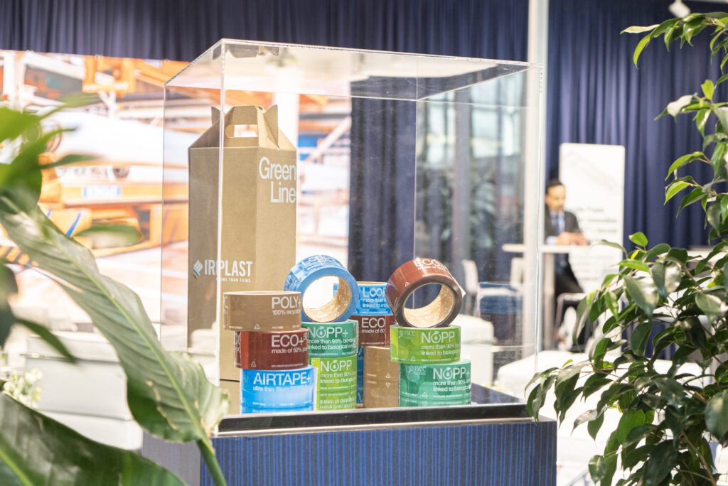 La gamma dei film sostenibili di IRPLAST è costituita da: NOPP (Natural Oriented Polypropylene), ottenuti da fonti rinnovabili come tall oil, resine provenienti da scarti della lavorazione del legno; NOPP+ realizzati con materie prime di origine vegetale di scarto (UCO - used cooking oil, oli esausti), che non prevedono lo sfruttamento di terreni agricoli (no-ILUC), nè di derivati animali e i LOOPP, realizzati a partire da olio di pirolisi ottenuto tramite riciclo chimico di materiale post-consumo. Tutti i film NOPP, NOPP+ e LOOPP sono adatti per tutti i settori che attualmente utilizzano il BOPP. In vetrina avrà ampio spazio anche la linea GREENLINE dei nastri adesivi sostenibili realizzati con materie prime circular LOOPP e biocircular NOPP, NOPP+.