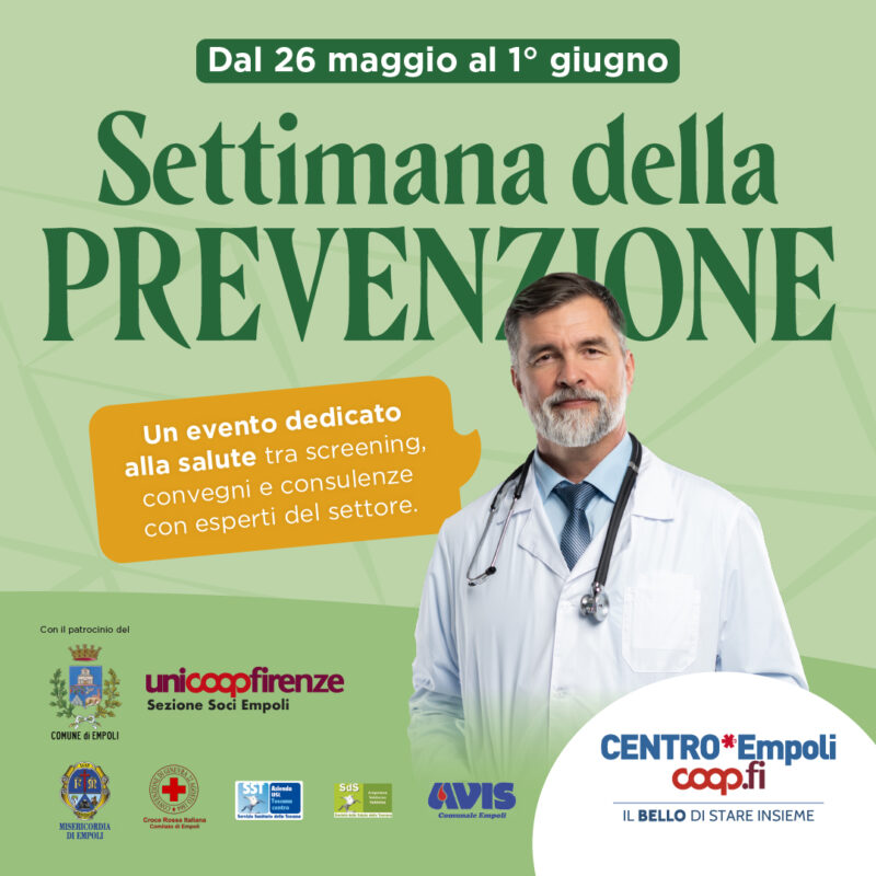Dal 26 maggio al 1° giugno 2025, Centro*Empoli torna a essere protagonista della prevenzione ospitando la terza edizione della "Settimana della Prevenzione", un'importante iniziativa approvata dalla Sezione Soci di Empoli, dedicata alla sensibilizzazione e alla cura del benessere della comunità. Nel corso dell’iniziativa tutti i soci, clienti e cittadini, potranno usufruire gratuitamente di analisi strumentali, consulenze, screening e convegni grazie alla collaborazione di istituzioni e partners sanitari.