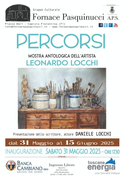 Sabato 31 Maggio 2025 alle ore 17,30, il Gruppo culturale Fornace Pasquinucci, presso la sede di Capraia Fiorentina Fi, Piazza R. Dori, inaugurerà la mostra antologica dell’artista Leonardo Locchi.