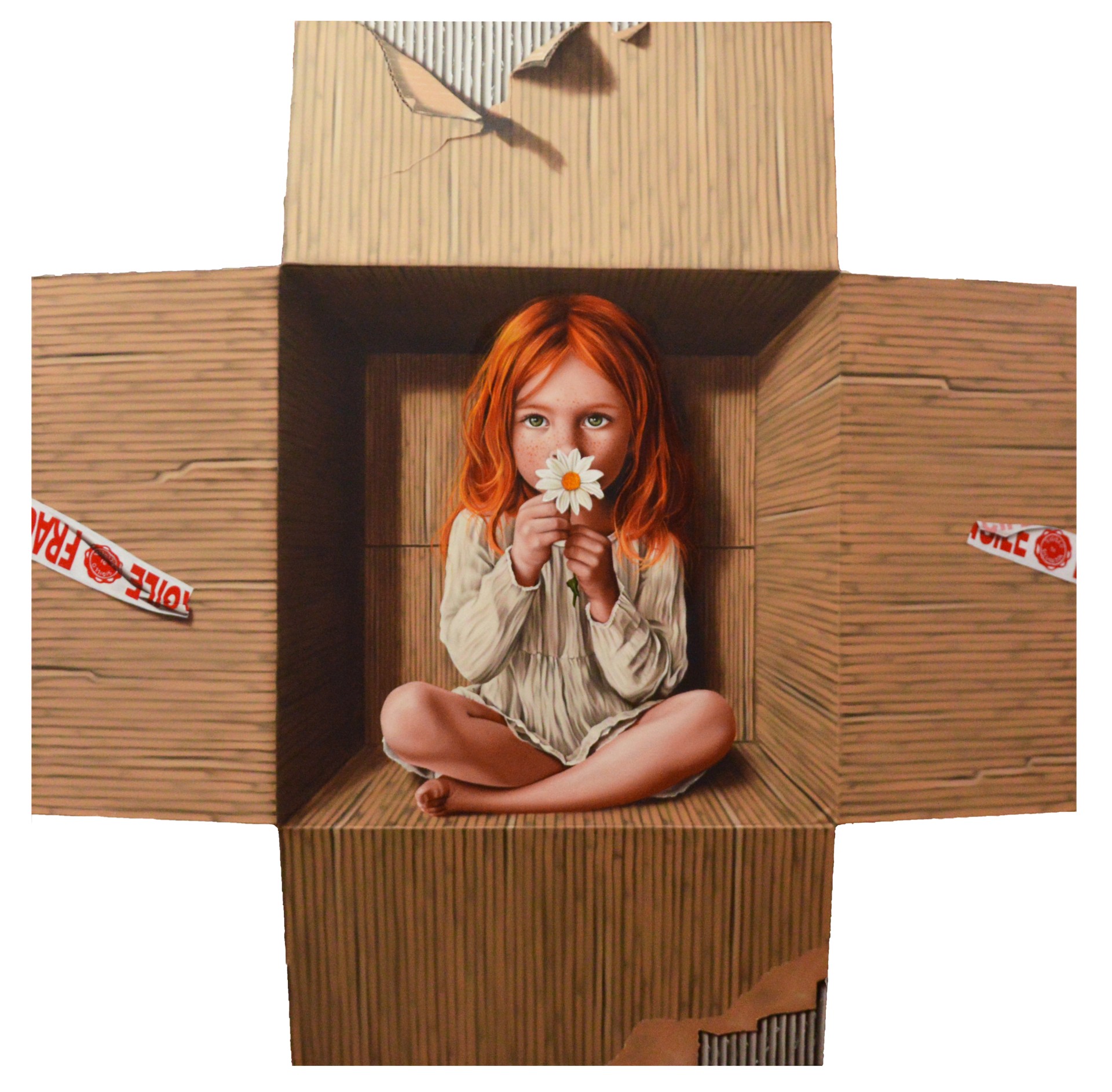 I dipinti “Box” irrompono con colore ed energia espressiva. Le scatole diventano metafore del contenere e del disvelare, luoghi di contenimento ma anche di possibile apertura, confini fra quel che si vede e quello che si nasconde.