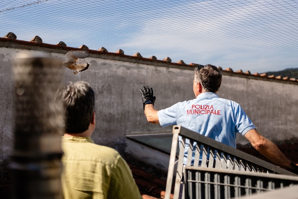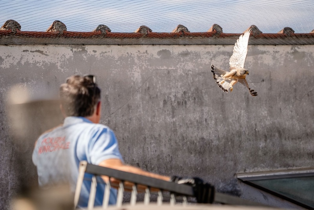 Nella tarda mattinata di ieri, mercoledì 28 maggio, un gheppio è rimasto intrappolato sul tetto del municipio di Sesto Fiorentino all’interno delle reti installate a protezione degli impianti di climatizzazione. Per diverse ore il rapace, un esemplare di sesso maschile, ha tentato di trovare una via d’uscita, rischiando di rimanere impigliato nelle reti e di ferirsi. Alla fine il gran movimento dell’animale, sempre più disorientato e impaurito, ha richiamato l’attenzione di alcuni dipendenti comunali che hanno chiesto l’intervento della Polizia Municipale.