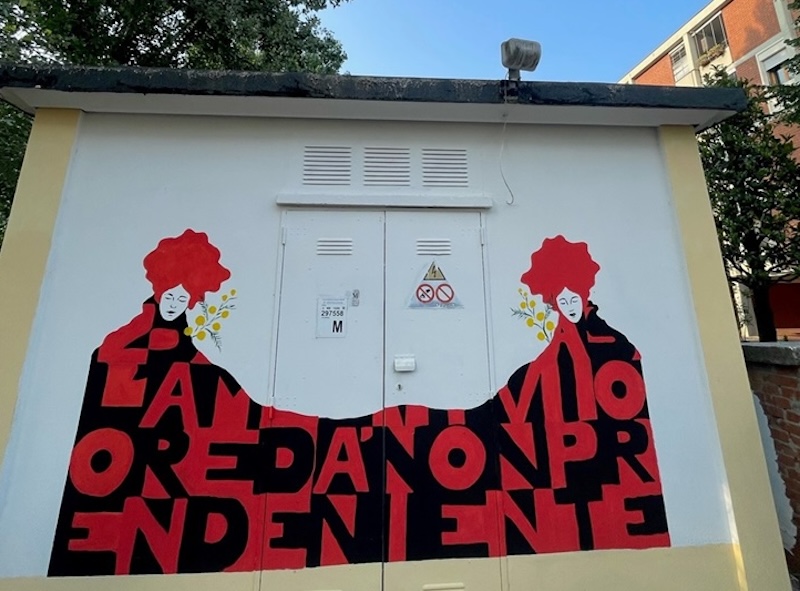 Proprio ad uno degli angoli del parchetto pubblico, dove sorge una cabina elettrica, importante snodo per il sistema elettrico locale, è stata realizzata un’opera di street art che lancia un messaggio forte dal punto di vista sociale: grazie alla collaborazione tra E-Distribuzione (società del Gruppo Enel che gestisce la rete elettrica di media e bassa tensione), Comune e Istituto scolastico comprensivo di Rufina, Anpi e tessuto associativo è stato realizzato un murale commemorativo intitolato “L’amore dà, non prende niente”, in ricordo di Eleonora Guidi, la giovane ragazza e mamma rufinese tragicamente scomparsa a inizio febbraio a causa dell’ennesimo femminicidio.