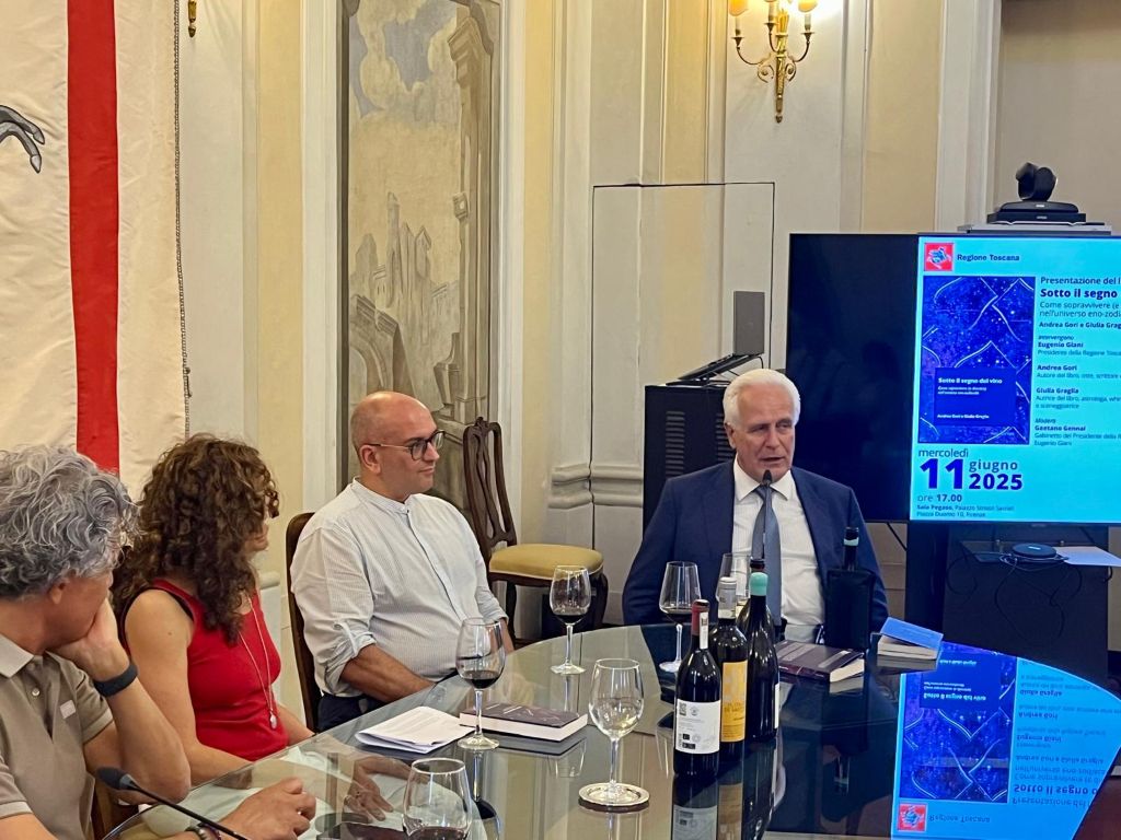 “Il vino in Toscana – continua Giani – oggi trova una pluralità sempre maggiore di vitigni che nelle loro varianti più pregiate derivano da coltivazioni destinate alla realizzazione di vini di famiglia, in una quantità relativamente limitata e che un tempo non facevano parte del prodotto destinato al commercio. Solo da una trentina d'anni sono diventati vini che hanno raggiunto una notorietà a livello internazionale. Anche di questo si è parlato al festival Agrofutura, che si è tenuto proprio in questi giorni qui a palazzo Strozzi Sacrati, e del vino come valore economico della nostra terra. La Toscana vanta vini conosciuti in tutto il mondo e negli anni passati siamo arrivati anche a superare il 20% annuo di incremento nell'esportazione, che oggi si attesta su percentuali lievemente minori, ma che che confermano il valore assoluto della nostra produzione. L’idea di collegarlo ai segni zodiacali è originale e conferisce ad un prodotto nobile un fascino ed un significato identitario ancora più marcato”.