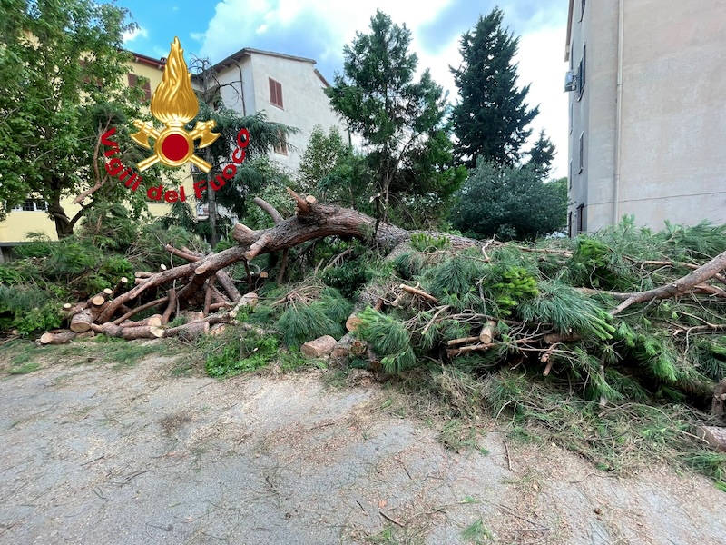 Un grosso pino situato in un'area condominiale è caduto questo pomeriggio a Firenze. Intorno alle 14.50 sono intervenuti i vigili del fuoco di Firenze Ovest, che giunti sul posto hanno immediatamente verificato che non ci fossero persone o animali sotto la chioma dell'albero.