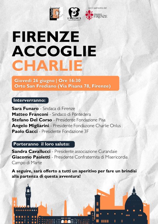 L’evento “Firenze accoglie Charlie”, in programma a giovedì 26 giugno, alle ore 16.30, all'Orto San Frediano con il patrocinio del Comune di Firenze, sarà un’occasione per conoscere da vicino l’impegno della Fondazione, attiva dal 1989 con il suo storico Telefono amico, nato per ascoltare senza giudizio chi vive situazioni di dipendenza, malattia, solitudine.