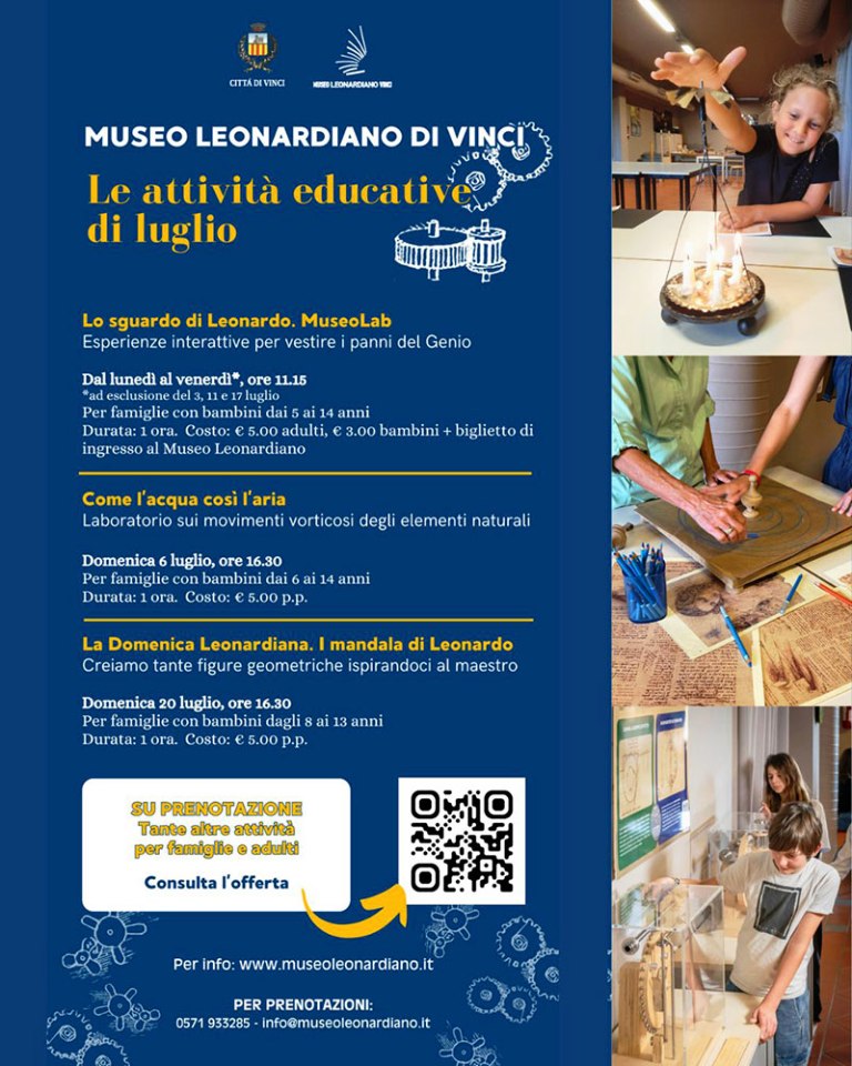 Il Museo Leonardiano programma per tutto luglio una serie di attività educative, disponibili per tutta la durata del mese.