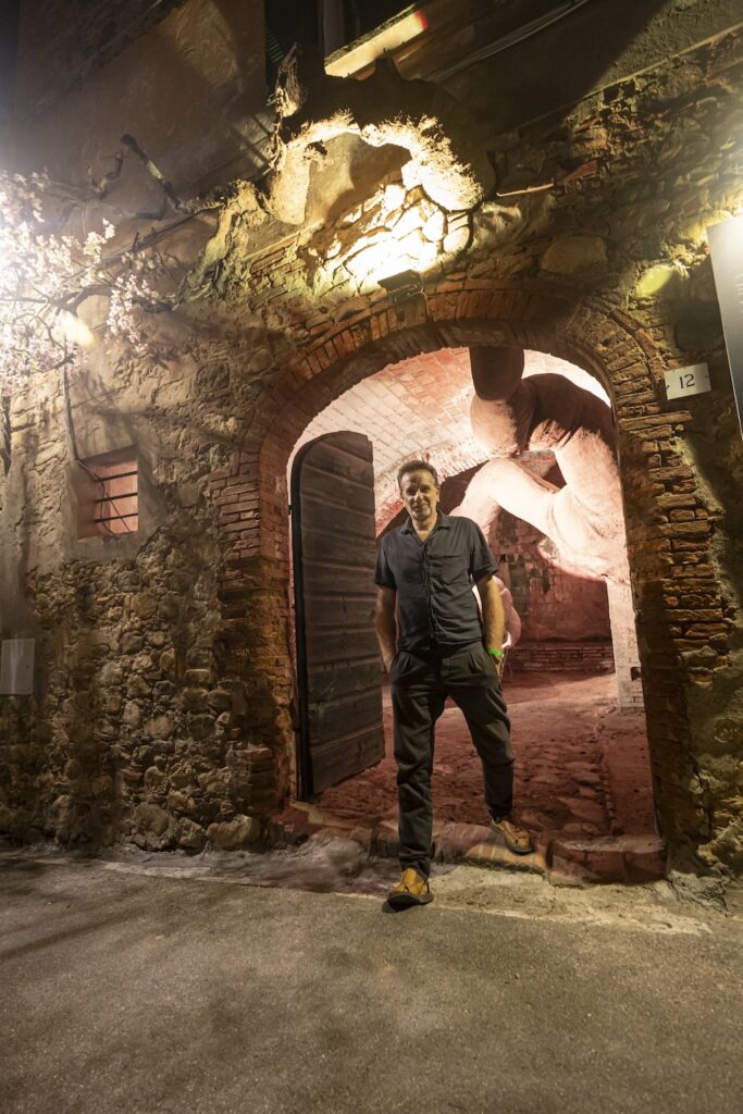 Alberto Bartalini è il padre, l’ideatore del Teatro del Silenzio: “Il posto ti chiamava, ti diceva ‘succede qualcosa’ e qualcosa era già successo, il laghetto c’era da tempo. Dopo venti anni ritorna Igor Mitoraj, averlo è stato una cosa quasi impossibile, abbiamo tre opere, due in piazza e una al Teatro del Silenzio”.