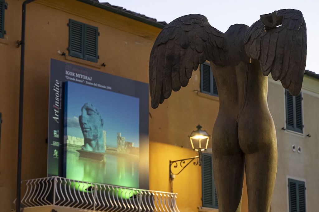 Mitoraj è tornato con tre sculture monumentali in bronzo: “Tindaro Screpolato”, installata al Teatro del Silenzio, e “Ikaria” e “Torso di Ikaro”, in piazza Vittorio Veneto. L’artista aveva già inaugurato nel 2006 la prima scenografia del Teatro.