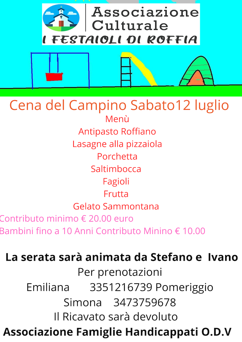 Una serata di comunità, un momento di condivisione semplice ma denso di significato: sabato 12 luglio, presso il suggestivo Campino della Pace a Roffia, si terrà una cena solidale il cui ricavato sarà interamente devoluto all’Associazione Famiglie Handicappati ODV. Un gesto che non è solo simbolico, ma profondamente sentito: un piacere, prima ancora che un dovere, offrire un contributo a chi quotidianamente si prende cura con dedizione e amore delle persone più fragili.