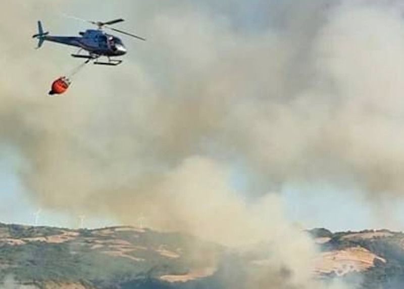 Incendio boschivo a Scansano, squadre e elicotteri in azione