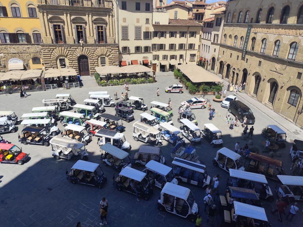 Proteste, oggi pomeriggio, sotto le finestre di Palazzo Vecchio a Firenze, dove decine di mezzi si sono dati appuntamenti per manifestare contro il provvedimento degli assessori Jacopo Vicini e Andrea Giorgio, che introduce nuove regole più stringenti per l’utilizzo di caddy elettrici, golf car, risciò e altri mezzi atipici nell’area Unesco della città. Il “Regolamento per lo svolgimento dell’attività di trasporto turistico”, che sarà presto approvato dalla Giunta dopo il passaggio in Consiglio Comunale, vieterà l’uso di questi mezzi nell’area protetta.