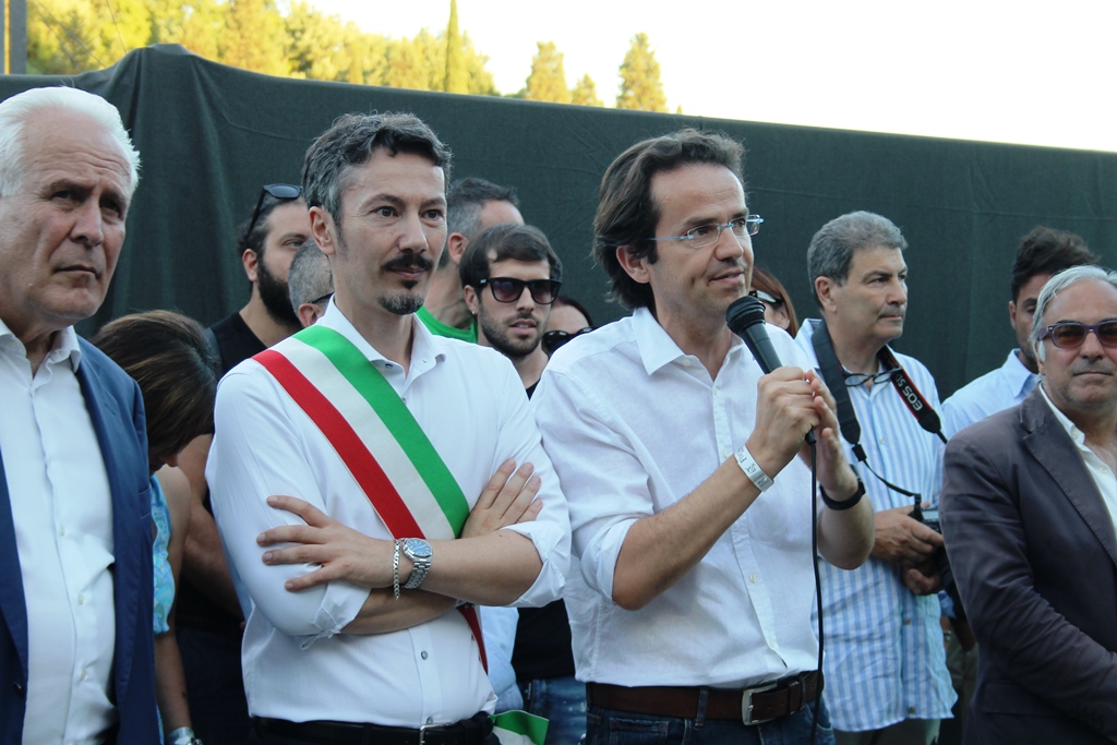 Ad aspettarli, Vanni e Giani, appunto, e con loro anche Alessio Mugnaini, presidente della giunta dei Comuni dell’Unione Empolese Valdelsa, Enrico Sostegni, consigliere regionale della Toscana, la giunta comunale di Vinci, i rappresentanti dei carabinieri della stazione di Vinci e del commissariato di polizia di Empoli, oltre a una folla di curiosi e appassionati.