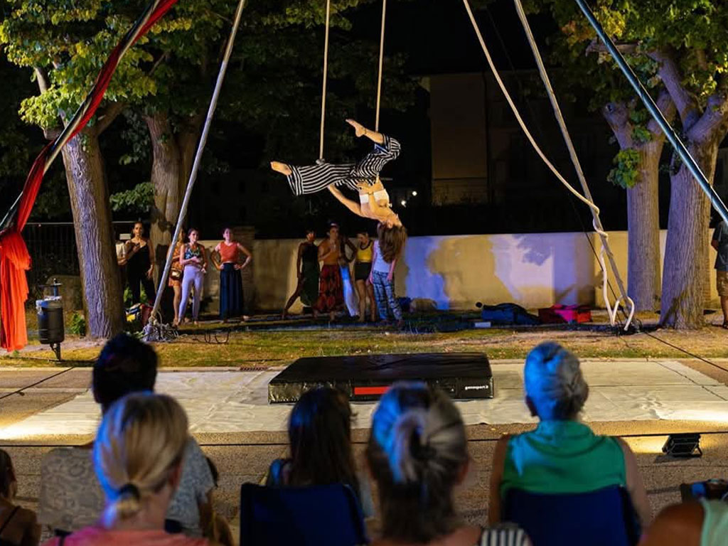 Il 18 luglio, nel pomeriggio sarà possibile partecipare ai laboratori ludici artistici delle Associazioni BagniCrea e il Gabbiano, per continuare alle alle 21 con la “Jam session di acrobatica aerea”, a cura di Antitesi Teatro Circo, aperta a chi desidera esibirsi in un’atmosfera di condivisione e divertimento, a seguire, alle 22, lo spettacolo clou della serata, “All’incirco Varietà” della Compagnia Lannutti e Corbo, il 25 luglio, invece, ci faremo meravigliare dai prodigiosi equilibrismi di Andrea Farnetani in “Gustavo la vita”, lo spettacolo sarà preceduto dalla performance di acrobatica aerea “Lutin”.