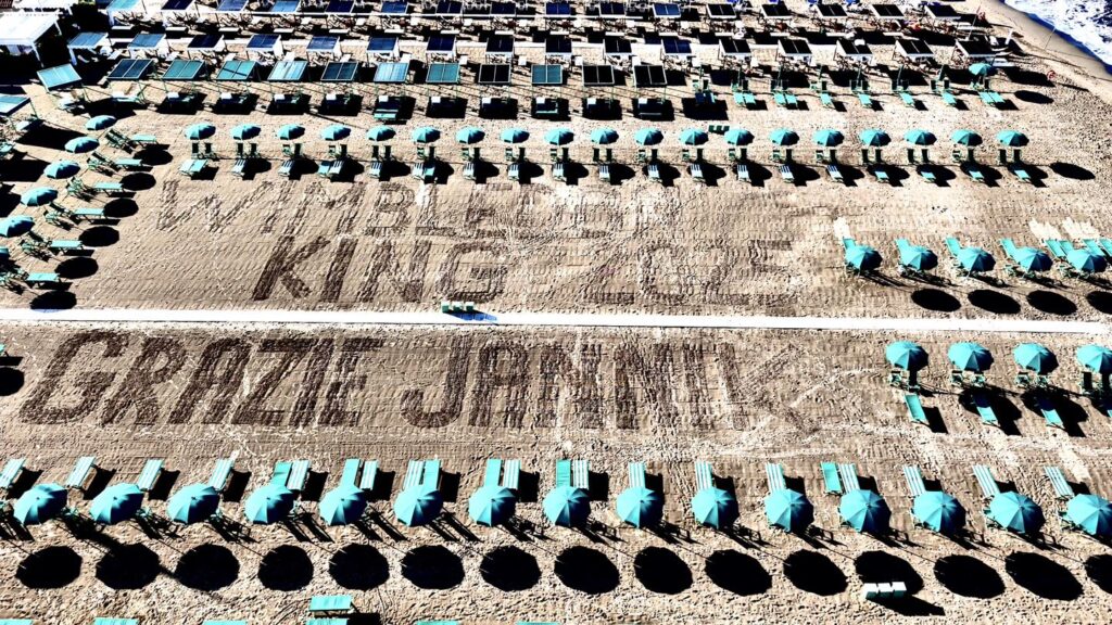 A Forte dei Marmi i bagnini del Bagno La Perla hanno omaggiato il tennista di San Candido con una dedica speciale all'indomani della storica vittoria in finale a Londra contro Alcaraz.