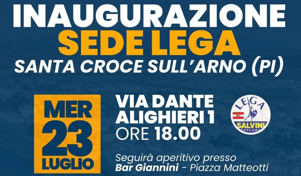 Santa Croce sull'Arno accoglie una nuova sede della Lega. L'inaugurazione sarà in via Dante Alighieri al civico 1, in centro. Si terrà alle 18 di mercoledì 23 luglio e avrà come seguito un aperitivo nel vicino Bar Giannini.